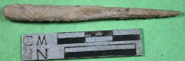 | Description / विवरण | Fragment of bone point,similar in conical profile, pointed end . Its colour is black and surface is rough. |
