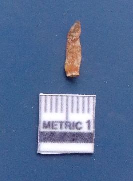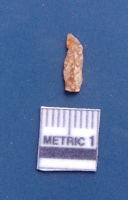 | Description / विवरण | It is a blade fragment with two sharp parallel sides and lateral margin with the working edges. The bulb of percussion is present ventral side with ripple on it due to flaking. It has flake scars on the surface. |