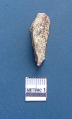 | Description / विवरण | It is a blade fragment with two sharp parallel sides and lateral margin with the working edges. The bulb of percussion is present ventral side with ripple on it due to flaking. It has flake scars on the surface. |