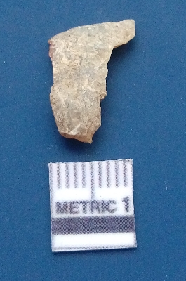 | Description / विवरण | It is a blade fragment with two sharp parallel sides and lateral margin with the working edges. The bulb of percussion is present ventral side with ripple on it due to flaking. It has flake scars on the surface. |