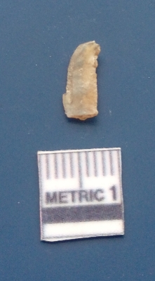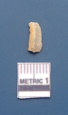 | Description / विवरण | It is a blade fragment with two sharp parallel sides and lateral margin with the working edges. The bulb of percussion is present ventral side with ripple on it due to flaking. It has flake scars on the surface. |