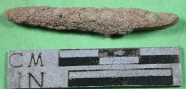 | Description / विवरण | Fragmentry part of bone point,cylindrical profile and both ends are damaged. Its surface is rough and off white colour |