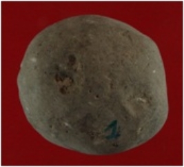 | Description / विवरण | Trench XF 4, Qdt 1, pit 1 SB layer 4, depth 335 It is a ball made of terracotta. Almost round in shape. Surface is rough and colour is muddy. |