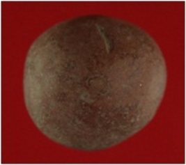 | Description / विवरण | Trench XF 4, Qdt 1, pit 1 SB layer 4, depth 335 It is a ball made of terracotta. Almost round in shape. Surface is smooth and colour is brick brown. |