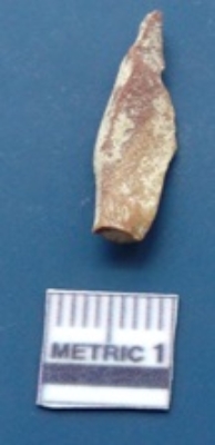 | Description / विवरण | It is a chert trapezium blade fragment having retouched edges with one sharp lateral margins, it has flake scars on its surface and is plain on its ventral side. |