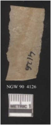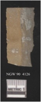 | Description / विवरण | It is a chert blade fragment, the ridges are clearly seen on the dorsal surface. The ventral surface is plain. The sides are sharp and retouched. It is triangular in cross section. |