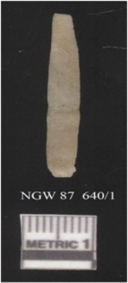 | Description / विवरण | It is a chert blade fragment, the ridges are clearly seen on the dorsal surface. The ventral surface is plain. The sides are sharp. The bulb of percussion can be seen on the surface. |