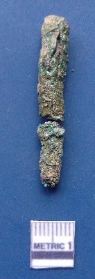 | Description / विवरण | It is a copper nail. It is corroded and is greenish in color. The soil incrustation are clearly seen on the surface. |