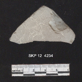 | Description / विवरण | It s a polished stone. Silt stone, whitish green in color. One side is flat and plain and the other side is not worked. Square in shape broken. |