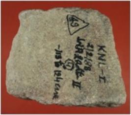 | Description / विवरण | Trench WA 2, Qdt 2, layer 4, depth 113-124 cms It is a implement broken made of stone. Surface is rough and colour is reddish. Shape is uneven. |