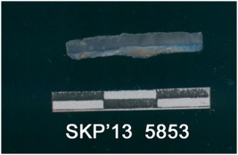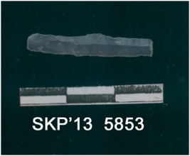| Description / विवरण | Broken chalcedony blade. It is long and rectangular in structure. The sides are retouched. It is trapezium in cross section. |