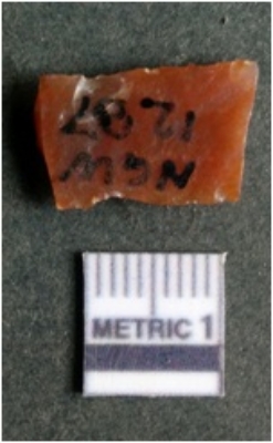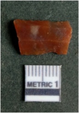 | Description / विवरण | The lithic blade is flaked with retouched sides and shows flake scars on the surface. The blade shows a prominent bulb of percussion. |