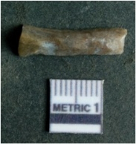 | Description / विवरण | The lithic blade is flaked with retouched sides and shows flake scars on the surface. The blade shows a prominent bulb of percussion. |