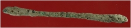 | Description / विवरण | Trench WA 29, Qdt 3, layer 9, depth 265cms Its am antimony rod made of copper. Both ends are round. It is thin in the middle. Patina is present over it with heavy deposition of dust and dirt. |