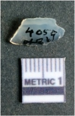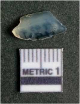| Description / विवरण | The lithic blade is flaked with retouched sides and shows flake scars on the surface. The blade shows a prominent bulb of percussion. |