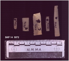 | Description / विवरण | Broken piece of chert blades. Both the edges are sharp and ridges can be seen.Trapezium in cross-section. |