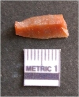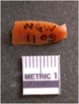 | Description / विवरण | This is a broken blade fragment of chert stone, flaked and ridges with bulb of percussion seen on the tapered end side with sharp margins. |