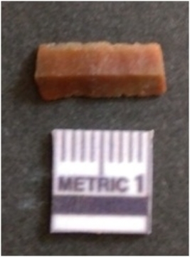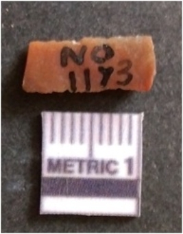 | Description / विवरण | This is a chert stone blade, flaked and retouched. Broken at both ends with trapezium cross section, side margins are denticulated. |