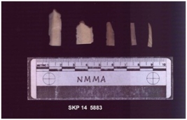 | Description / विवरण | This is a small fragment of blade. It has cross section in parallelogram, the ventral sides are plane and there are traces of used are marks on the lateral sides. |