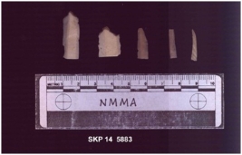 | Description / विवरण | This is a small fragment of blade. It has a notch in the distal end. Its cross section is in parallelogram retouching on one lateral end and other has some used ware mark on them. |