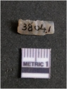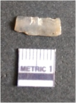 | Description / विवरण | This chalcedony blade fragment is broken at both ends, flaked and ridged. Translucent and retouched. |