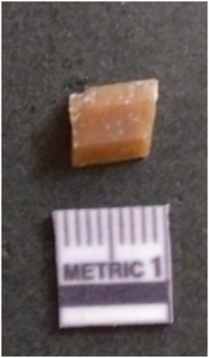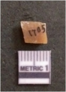 | Description / विवरण | This is a chert stone blade, broken, flaked and ridged. Trapezium cross section at both broken ends. |