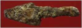 | Description / विवरण | Trench WA 24, Qdt 1, layer 6, depth 215 cm It is an arrow head made of iron. Blade is double edged and tip is broken, and half of the blade is also lost. It is corroded badly. |