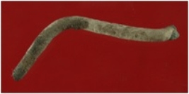 | Description / विवरण | Trench XAX 19, Qdt 1, layer 1, depth 65 cm It is a wire piece made of copper. Badly deformed and patina is present on it. |