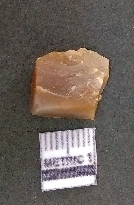 | Description / विवरण | This is a chalcedony flake, flaked and ridge. Bulb of percussion seen on one side, one end tapered to a point. Cortex covered on one side. |