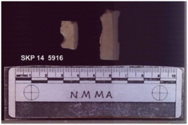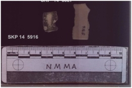 | Description / विवरण | It is a fragment of a rohri chart blade with smooth surface both side and triangular cross-section. Prominent midrib. |