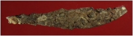 | Description / विवरण | Trench WA 26, Qdt 2, layer 14, depth 425 cm It is a knife made of iron. Blade is curved. Tip and handle is broken. Blade is wide in the middle. It is rusted badly. |