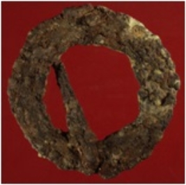 | Description / विवरण | Trench WA 26, Qdt 2, layer 14, depth 425 cm It is a ring made of iron. Circular in shape. Comparatively big in size. There is rod cojoined with it in the circle. Surface has become rough due to heavy rusting. Appearance is rusty brown. |