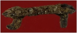 | Description / विवरण | Trench XAX 19, Qdt 1, layer 3, depth 210 cm It is an iron clamp. Two iron knob are attached on a flat shaft. Badly deformed and corroded. |