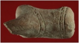 | Description / विवरण | Trench XAY 19, Qdt 1, layer 2, depth 80 cm It is an animal figurine made of terracotta. Dotted design is done on the body. Face is lost and all legs are broken. |
