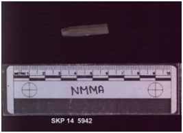 | Description / विवरण | It s a thin elongated blade fragment. Its has two flake ribs running parallel on the dorsal side. There is positive bulb of percussion on the ventral side. There is errailure bulb mark on the ventral bulb of percussion. These used ware marks on the lateral ends. |
