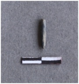 | Description / विवरण | Ernestite drill bit. It is black in color and pointed at one end. It is long and tubular in structure. |