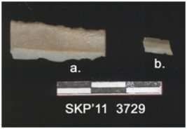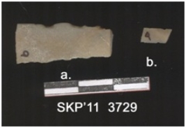 | Description / विवरण | Broken chert blade, ridges can be seen clearly, the sides are sharp and retouched. Triangular in cross section. |