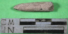 | Description / विवरण | Bone point with rough sides,showing pointed and biconical in shape and dull black in colour. |