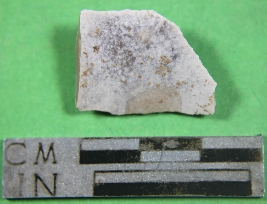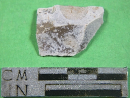 | Description / विवरण | Small fragmentary chert blade, brownish grey, thick broad parallel sided, single ribbed blade, both ends truncated and trapezoidal in section. |