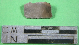 | Description / विवरण | Small fragmentary chert blade brownish grey, thick, narrow parallel sided, single ribbed blade, both ends truncated and sharp cutting edges, trapezoidal in section. |