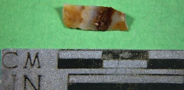 | Description / विवरण | Small brown parallel sided blade tool having single broad ribbed, both ends are truncated and sharp cutting edges. |