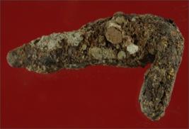 | Description / विवरण | Trench XAX 19, Qdt 1, layer 7, depth 210 cm It is a nail made of iron. Cap is present and one end is pointed. Badly deformed and corroded. |