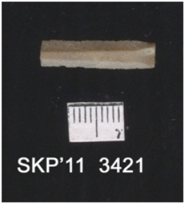 | Description / विवरण | Broken chert blade it is long and rectangular in structure and is trapezium in cross section. The ridges can be seen clearly the sides are retouched. |