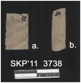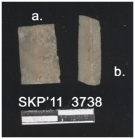 | Description / विवरण | Broken chert blade, rectangular in structure the ridges can be seen clearly. Triangular in cross section, the sides are sharp and retouched. |