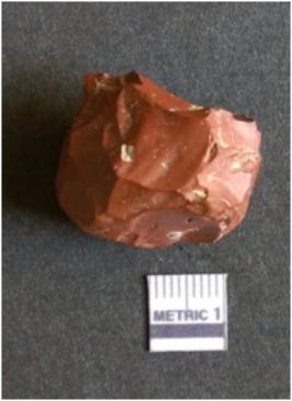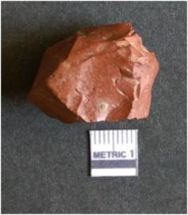 | Description / विवरण | It is a Jasper flake with a negative bulb of percussion on the proximal end. The material is cryptocrystalline and has sharp edges as a result of flaking. The flake is most likely a bi-product of core reduction or retouching process. |