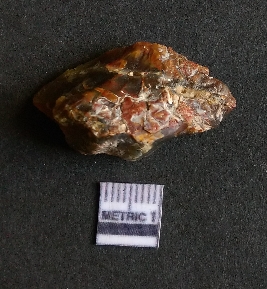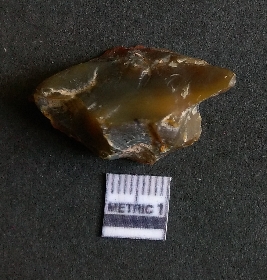 | Description / विवरण | It is a Jasper flake with a negative bulb of percussion on the proximal end. The material is cryptocrystalline and has sharp edges as a result of flaking. The flake is most likely a bi-product of core reduction or retouching process. |