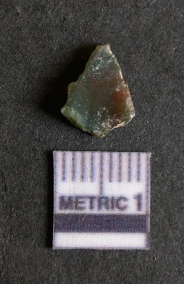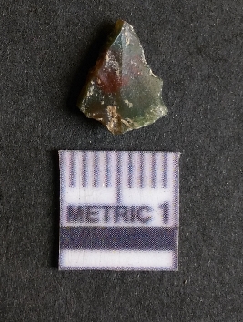 | Description / विवरण | It is a Jasper flake with a negative bulb of percussion on the proximal end. The material is cryptocrystalline and has sharp edges as a result of flaking. The flake is most likely a bi-product of core reduction or retouching process. |