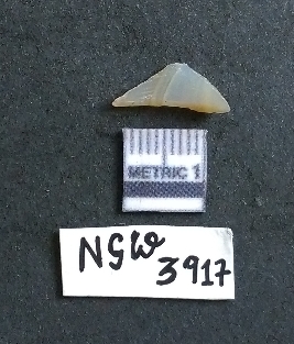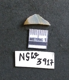 | Description / विवरण | The agate lunate has a roughl;y triangular shape and crested ridge as working edge. The piece is flat, pale white in colour and has sharp flaked edges. |