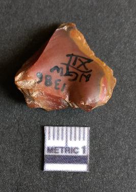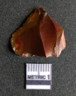 | Description / विवरण | It is a Jasper flake with a negative bulb of percussion on the proximal end. The material is cryptocrystalline and has sharp edges as a result of flaking. The flake is most likely a bi-product of core reduction or retouching process. |