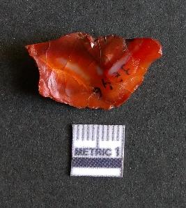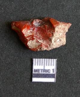 | Description / विवरण | It is a red Jasper flake with a negative bulb of percussion on the proximal end. The material is cryptocrystalline and has sharp edges as a result of flaking. The flake is most likely a bi-product of core reduction or retouching process. |